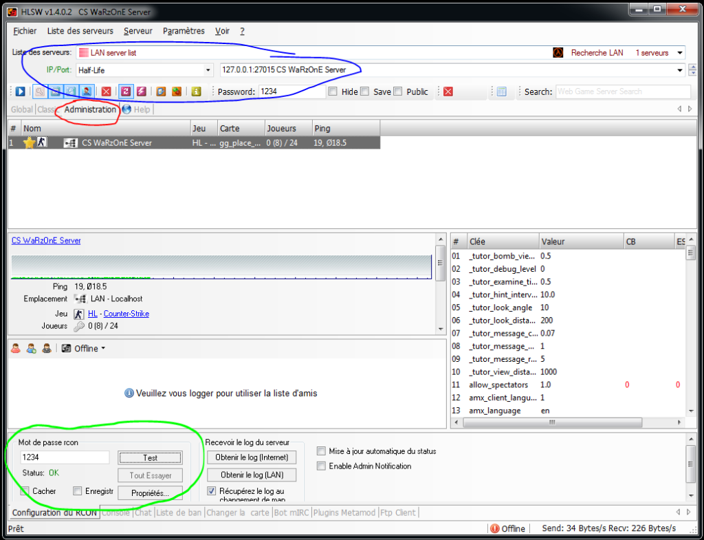 HLSW (Half-Life Server Watch) est un outil de gestion qui permet d’administrer le serveur LAN CS 1.6